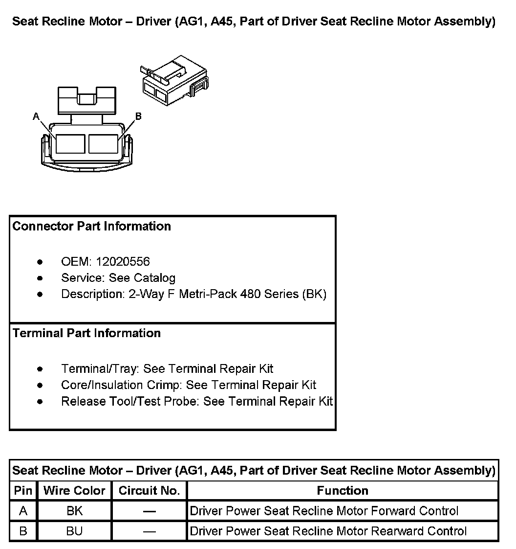 Seat Recline Motor - Driver C2 (With RPO Codes AE8, A45):