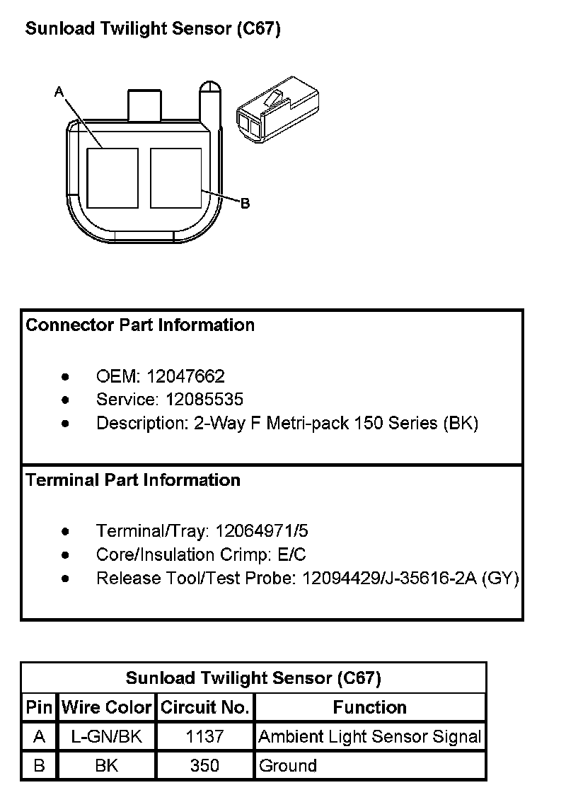 Sunload Twilight Sensor (With RPO Code C67):