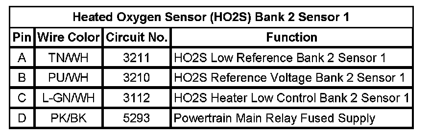 Heated Oxygen Sensor (HO2S) Bank 2 Sensor 1