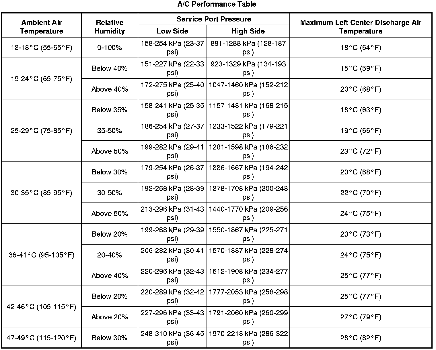 Air Conditioning (A/C) System Performance Test (LY7)