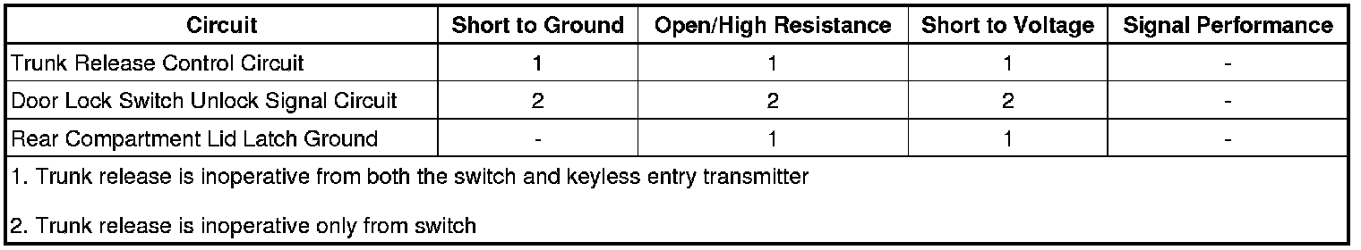 5. If all circuits test normal, test or replace the rear compartment lid latch