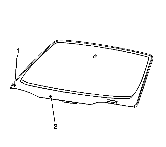 2. Align the wiper blades to the small voids in the windshield blackout (1 and 2).