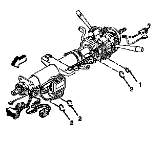 3. Remove the steering column wiring harness tie straps (1,2).