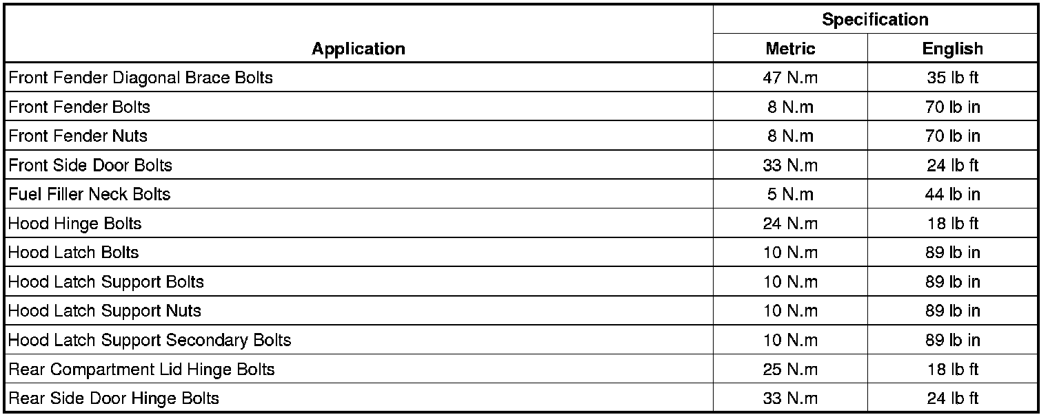Body and Frame: Specifications