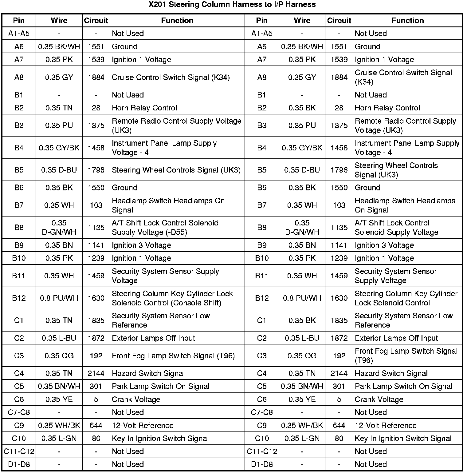 X201 Steering Column Harness to I/P Harness