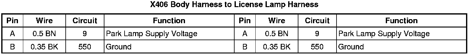 X406 Body Harness to License Lamp Harness