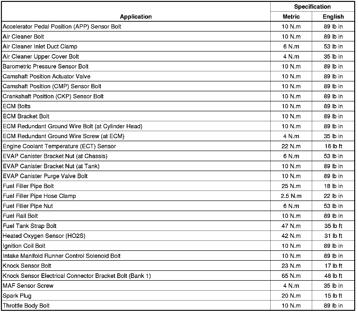Fastener Tightening Specifications