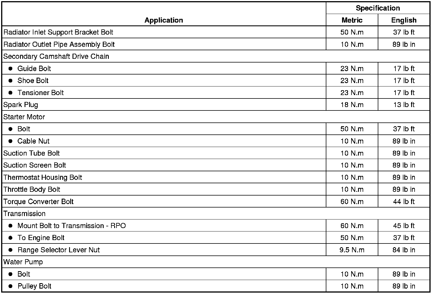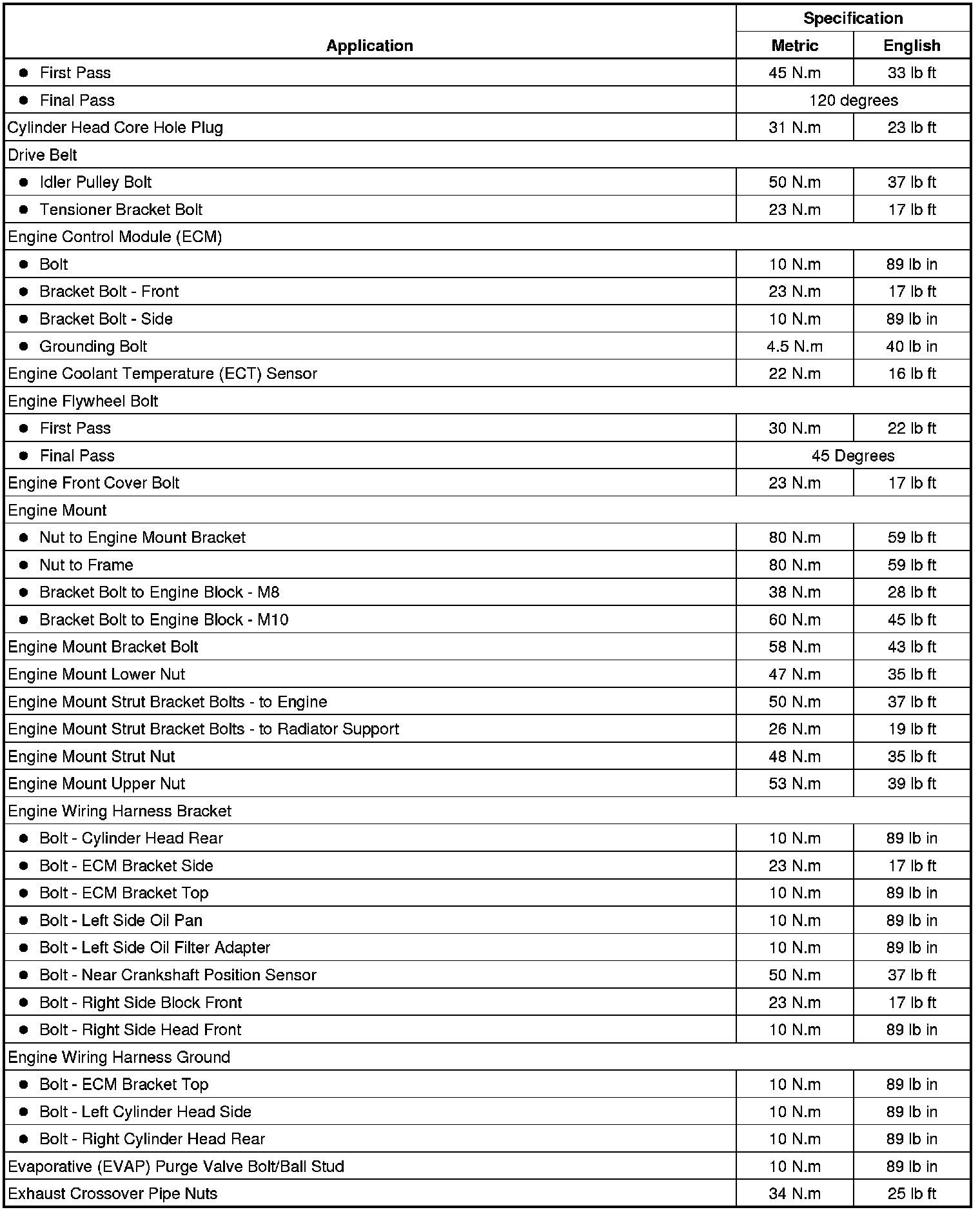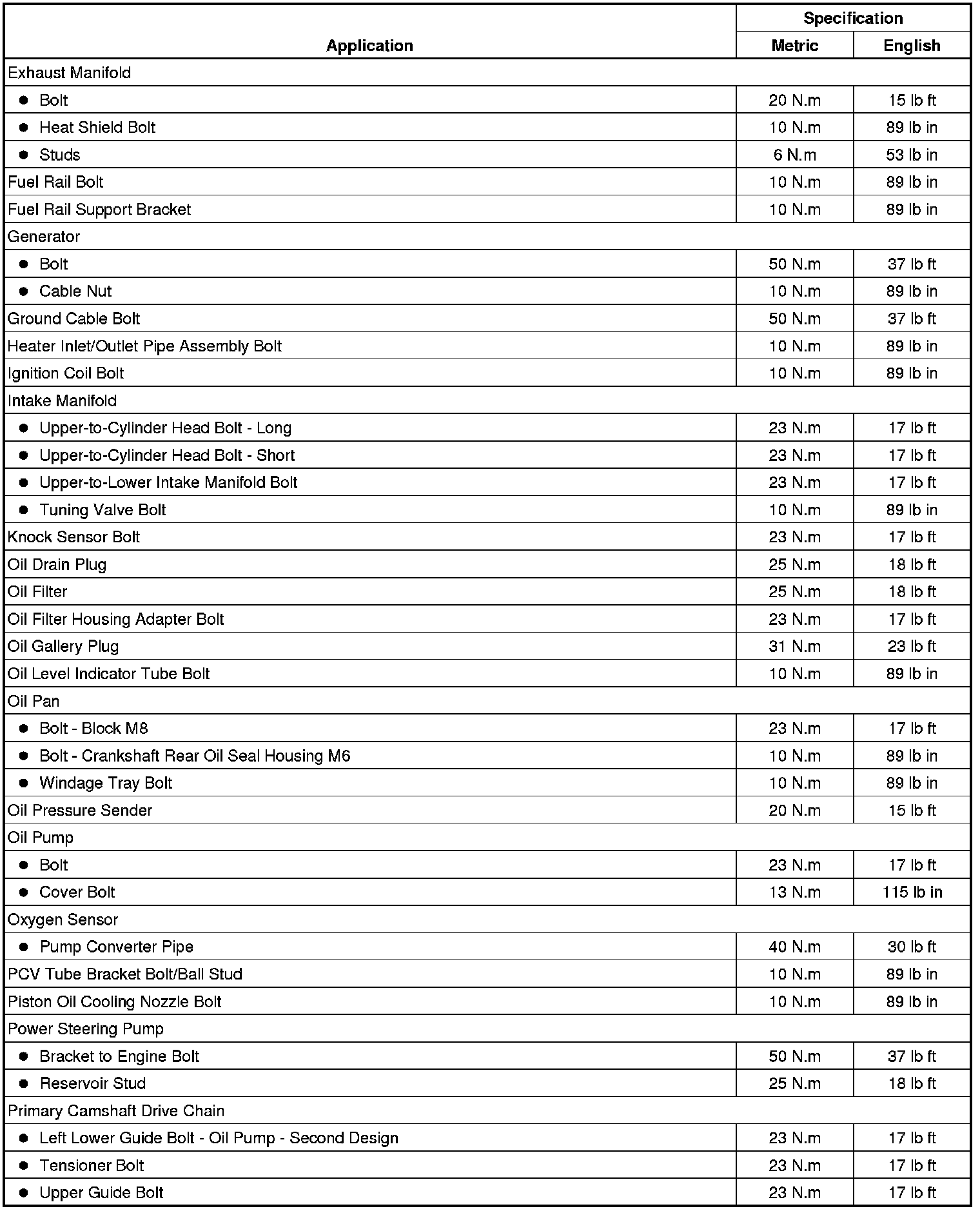 Fastener Tightening Specifications
