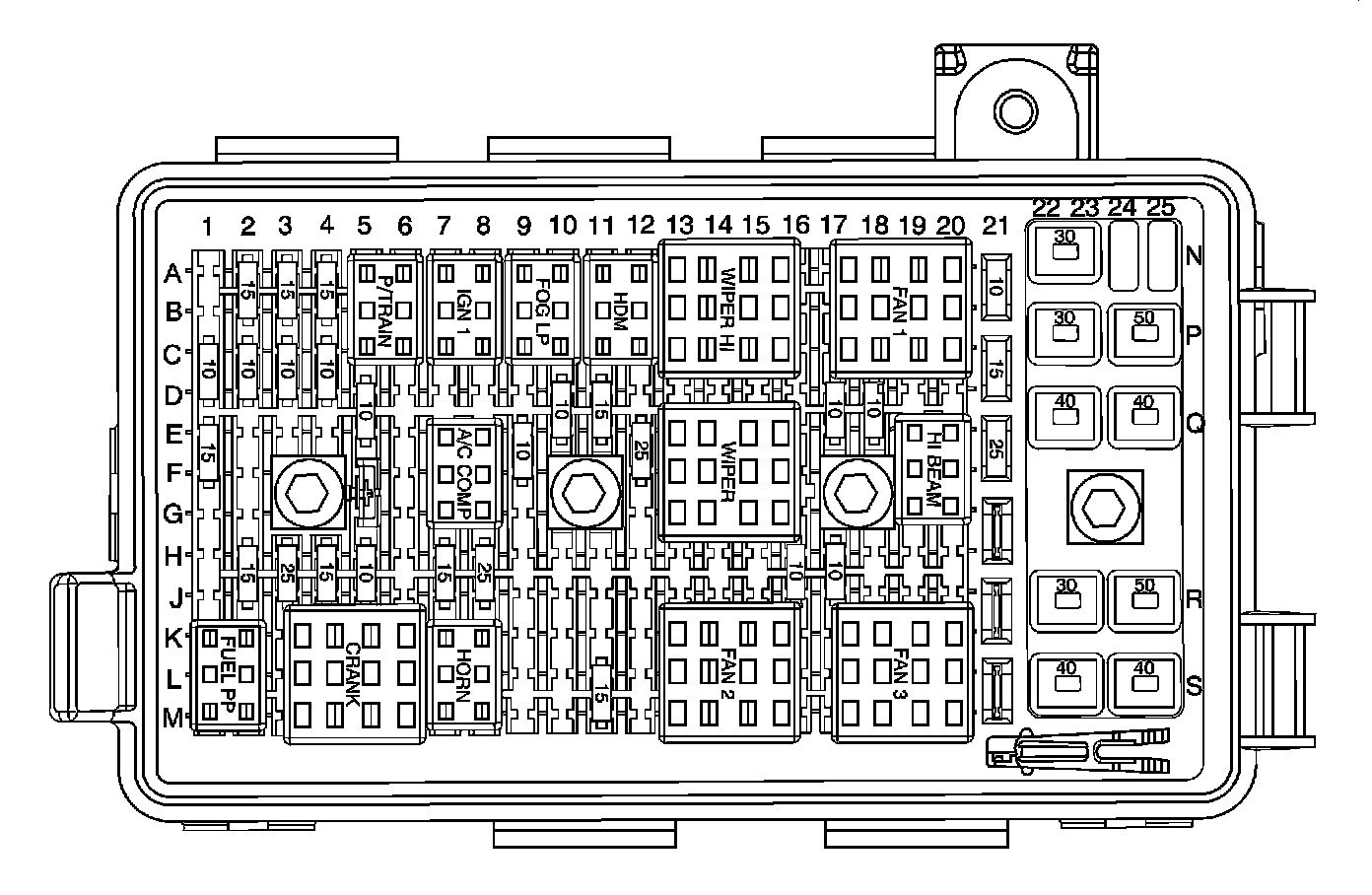 Fuse Block - Underhood - Top View