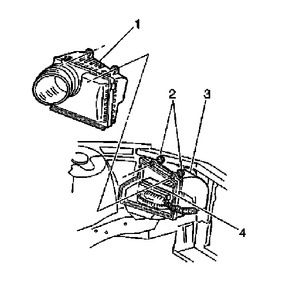 2. Install the PCM and the wiring harness to the air cleaner housing assembly (3).