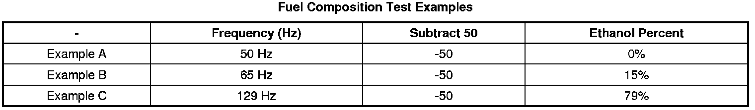 12. Subtract 50 from the reading on the DMM to obtain the percentage of alcohol in the fuel sample. Refer to the examples in the following table.