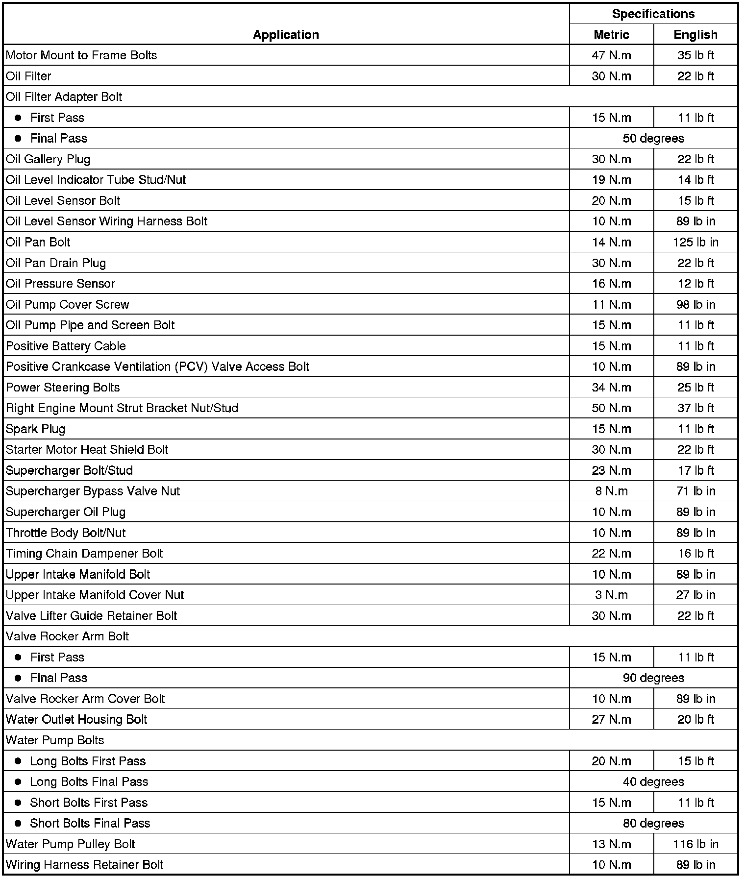 Fastener Tightening Specifications