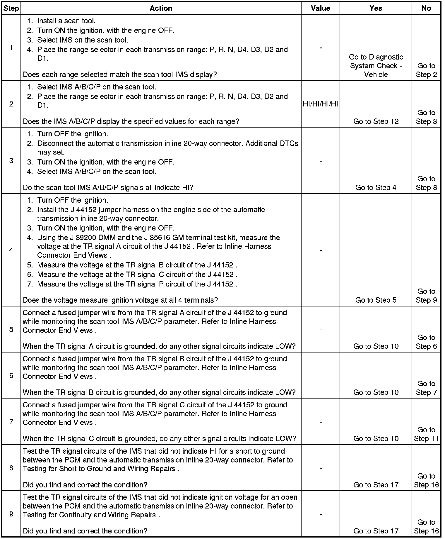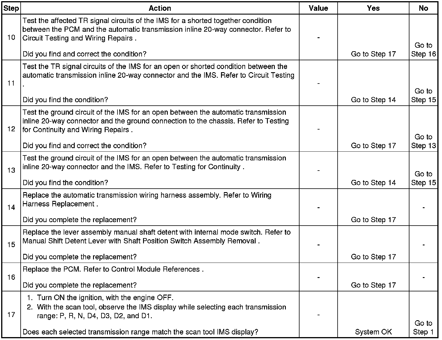 11. This step tests the internal transmission harness. If no fault is found in the harness, the fault is in the switch.
