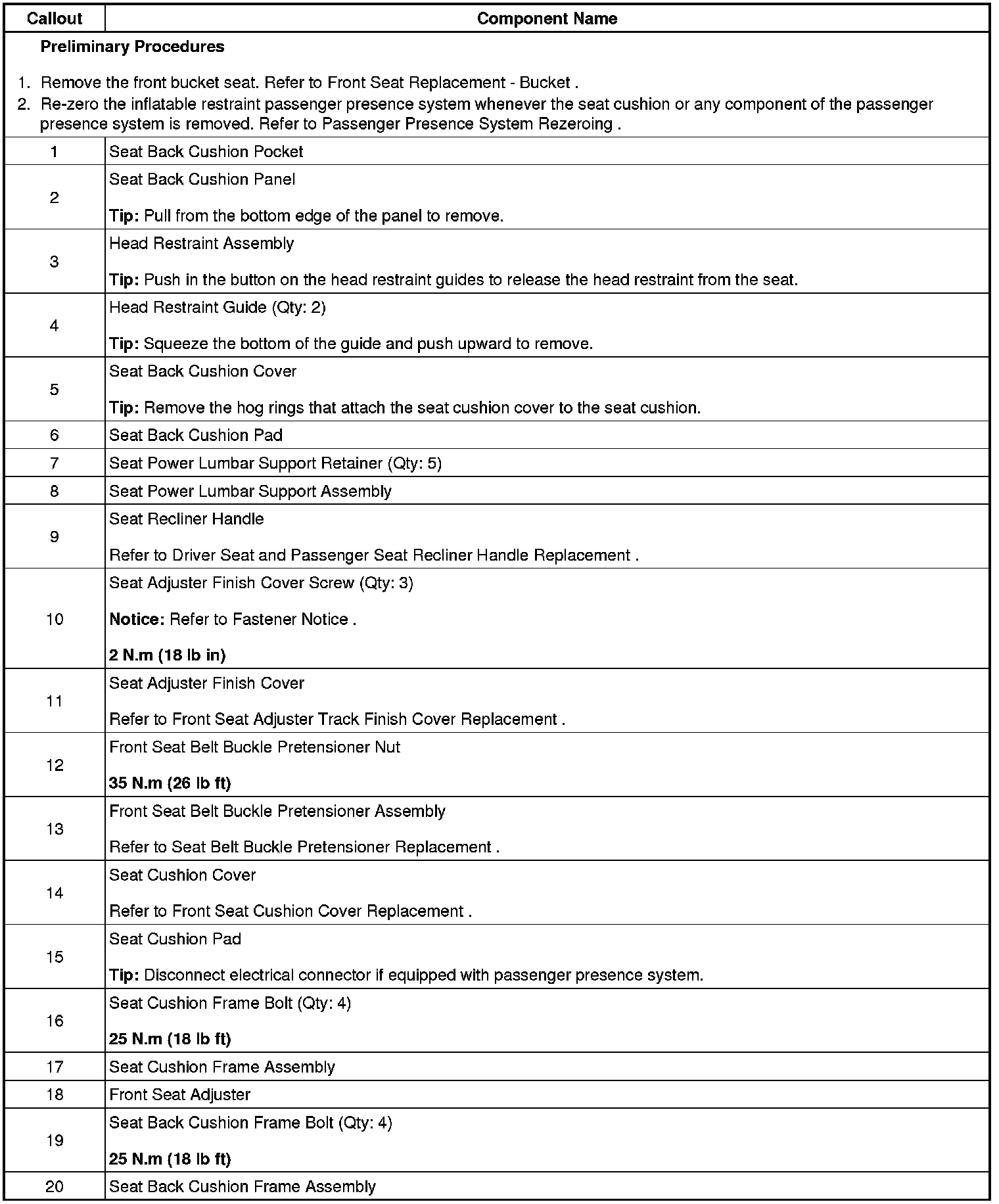 Front Seat Back Frame Replacement