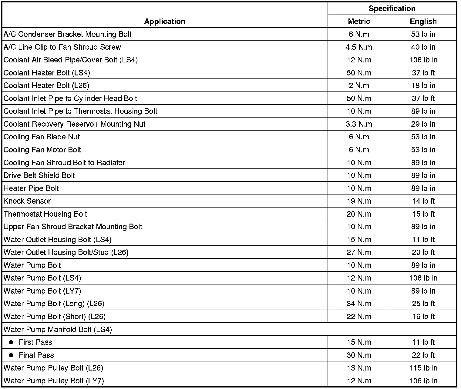 Fastener Tightening Specifications