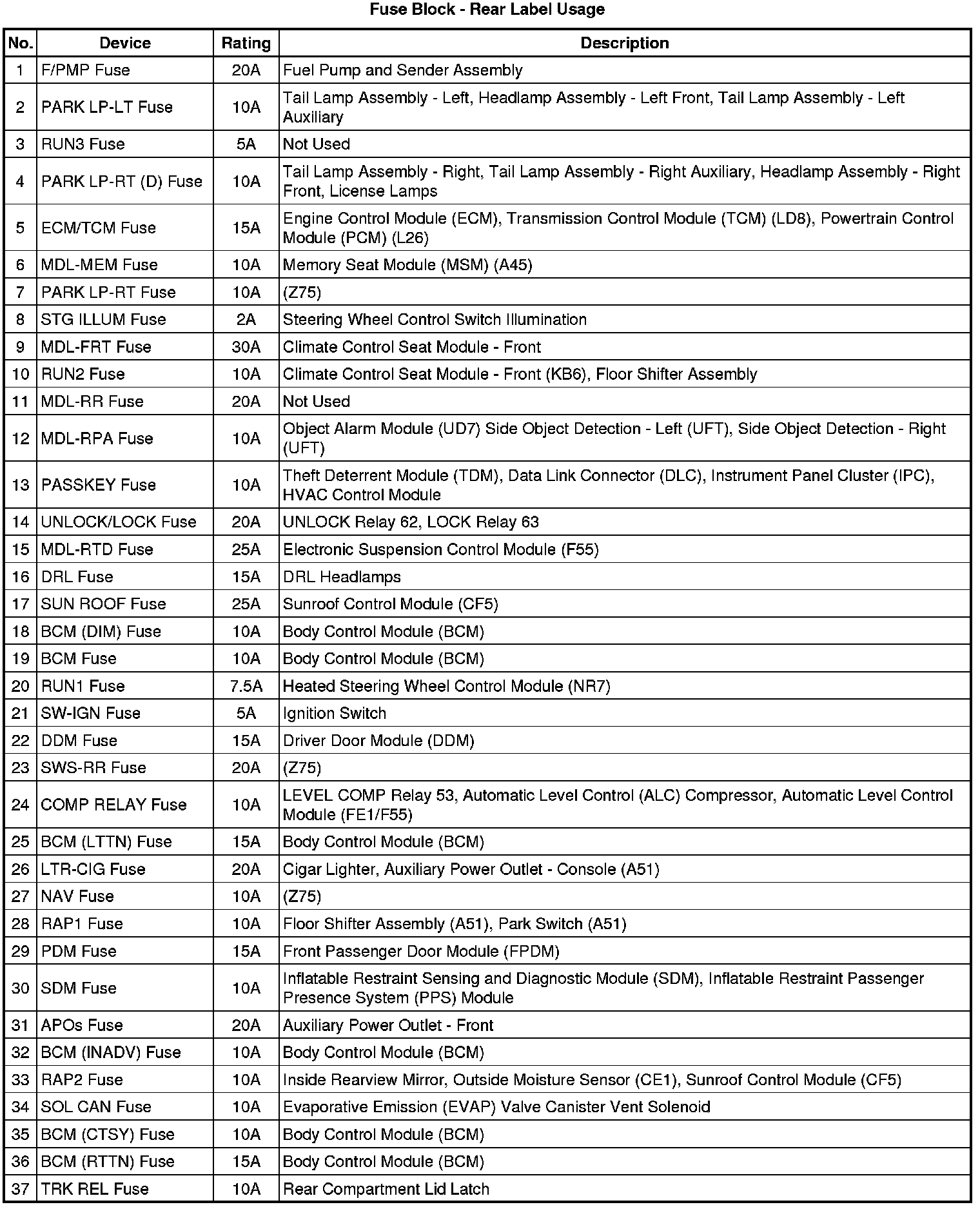Fuse Block - Rear Label
