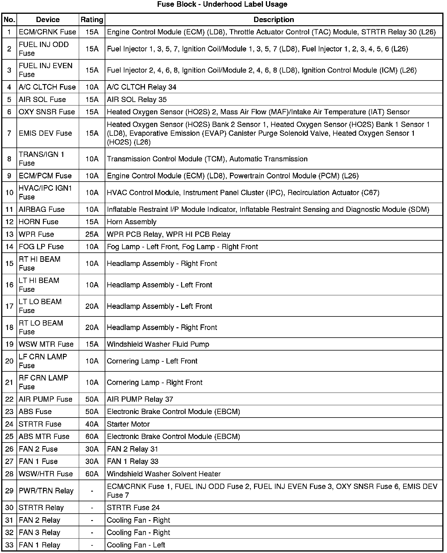 Fuse Block - Underhood Label