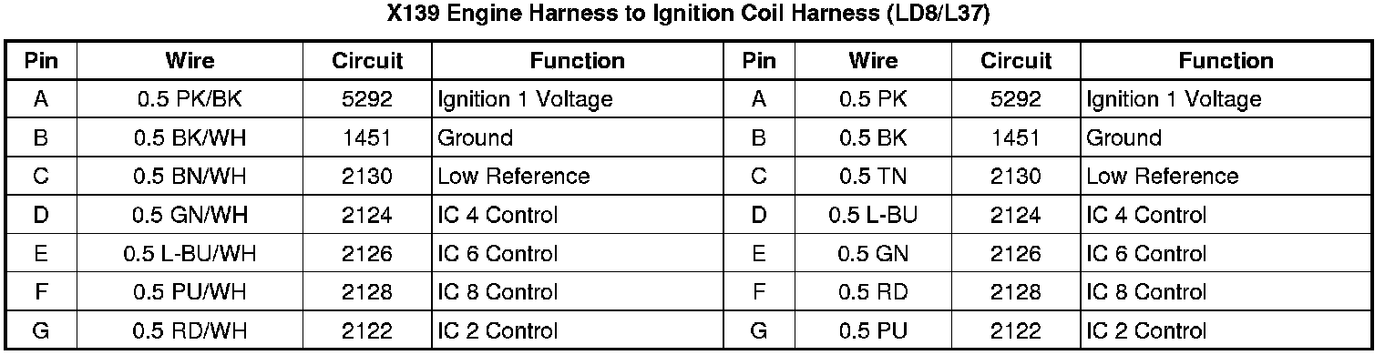 X139 Engine Harness to Ignition Coil Harness (LD8/L37/4.6L)