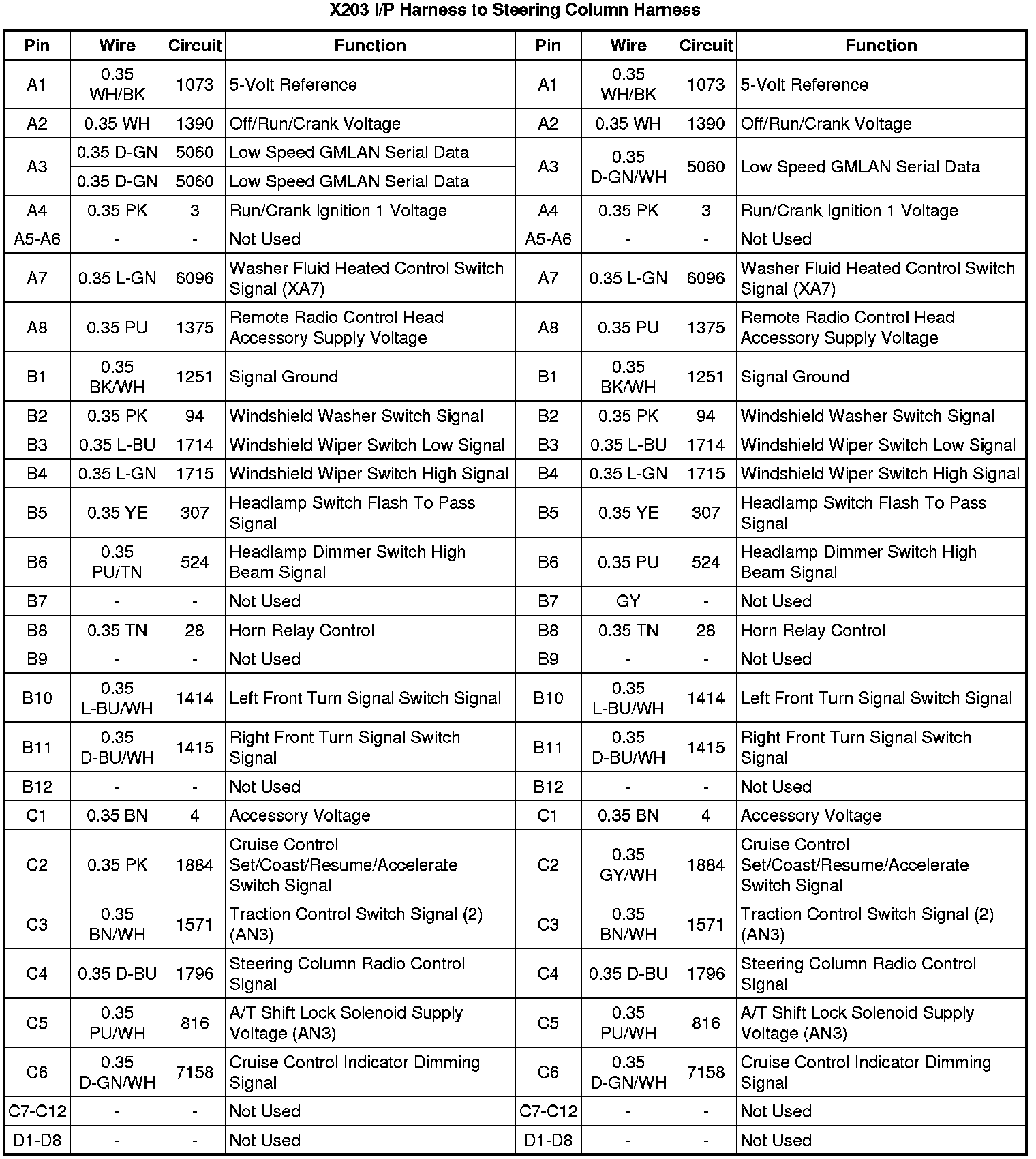 X203 I/P Harness to Steering Column Harness