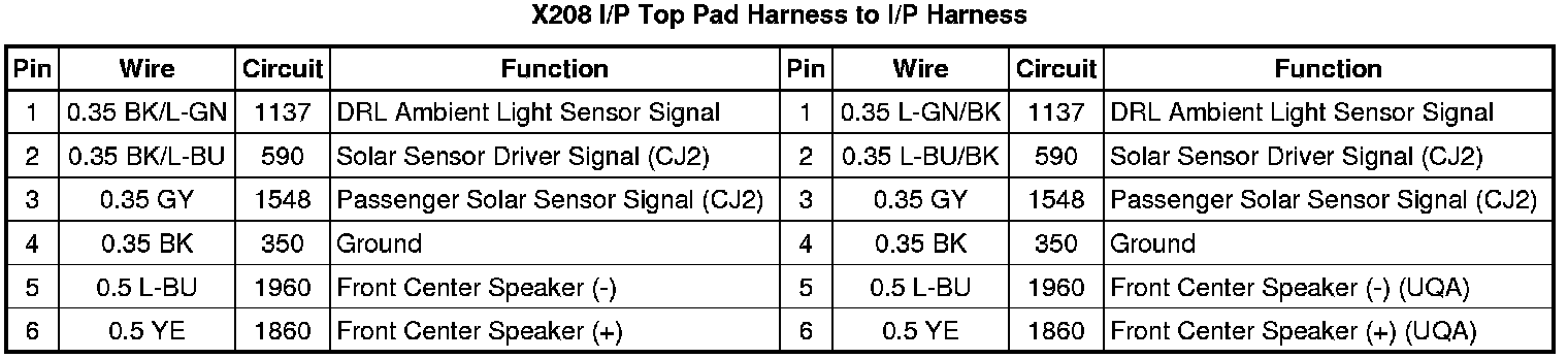 X208 I/P Top Pad Harness to I/P Harness