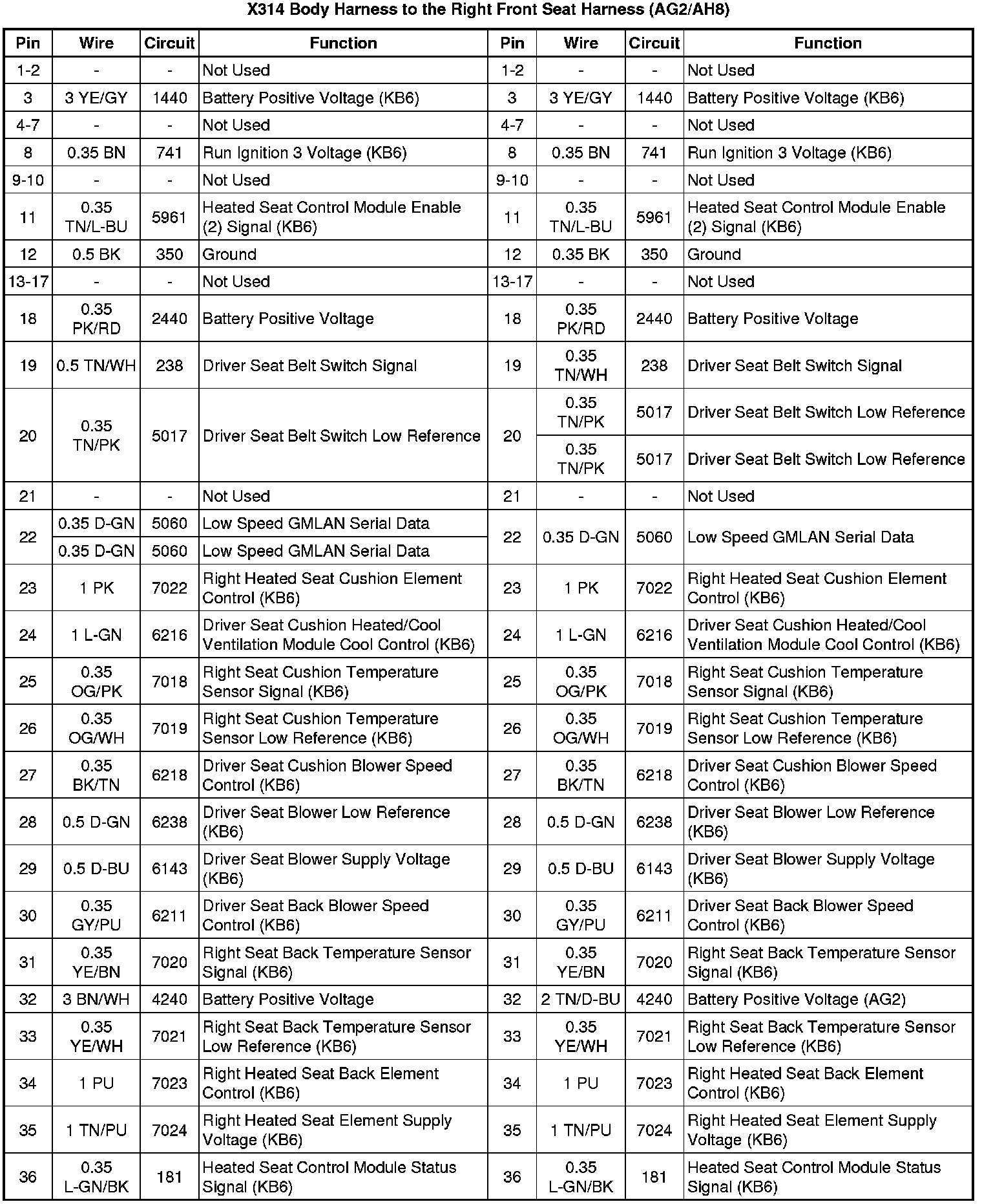 X314 Body Harness to the Right Front Seat Harness (AG2/AH8)