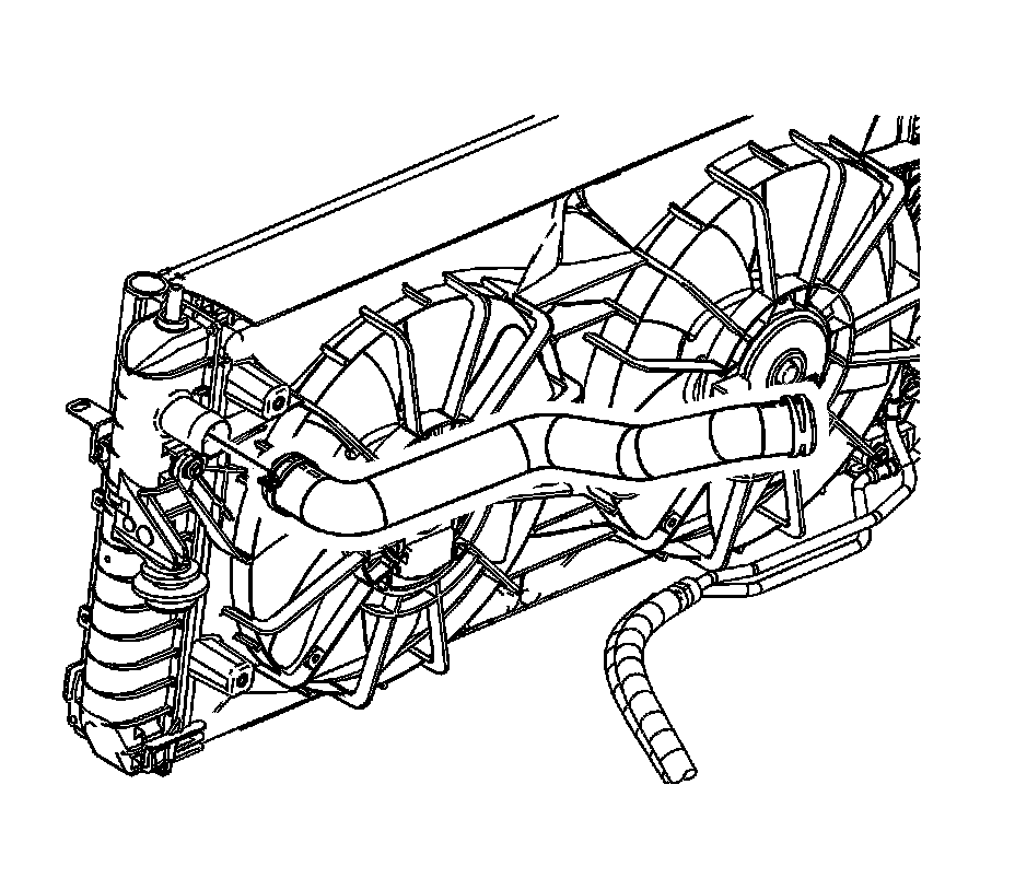 11. Remove the transmission oil cooler lines from the radiator. Refer to Transmission Fluid Cooler Hose/Pipe Quick-Connect Fitting Disconnection and Connection (Service and Repair).