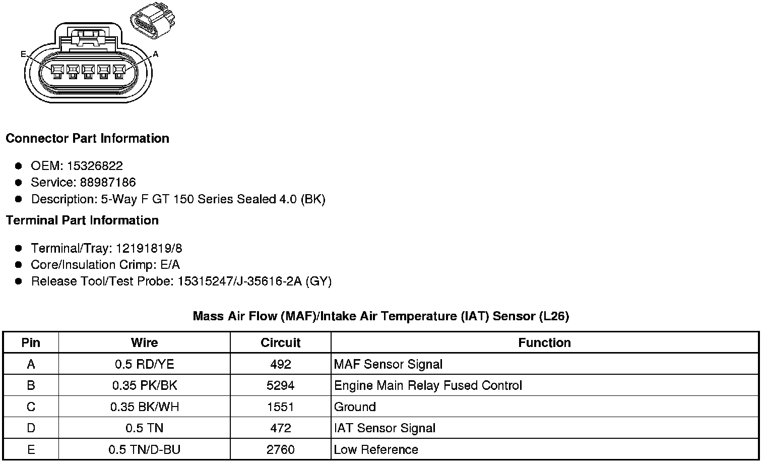 Mass Air Flow (MAF)/Intake Air Temperature (IAT) Sensor (L26/3.8L)