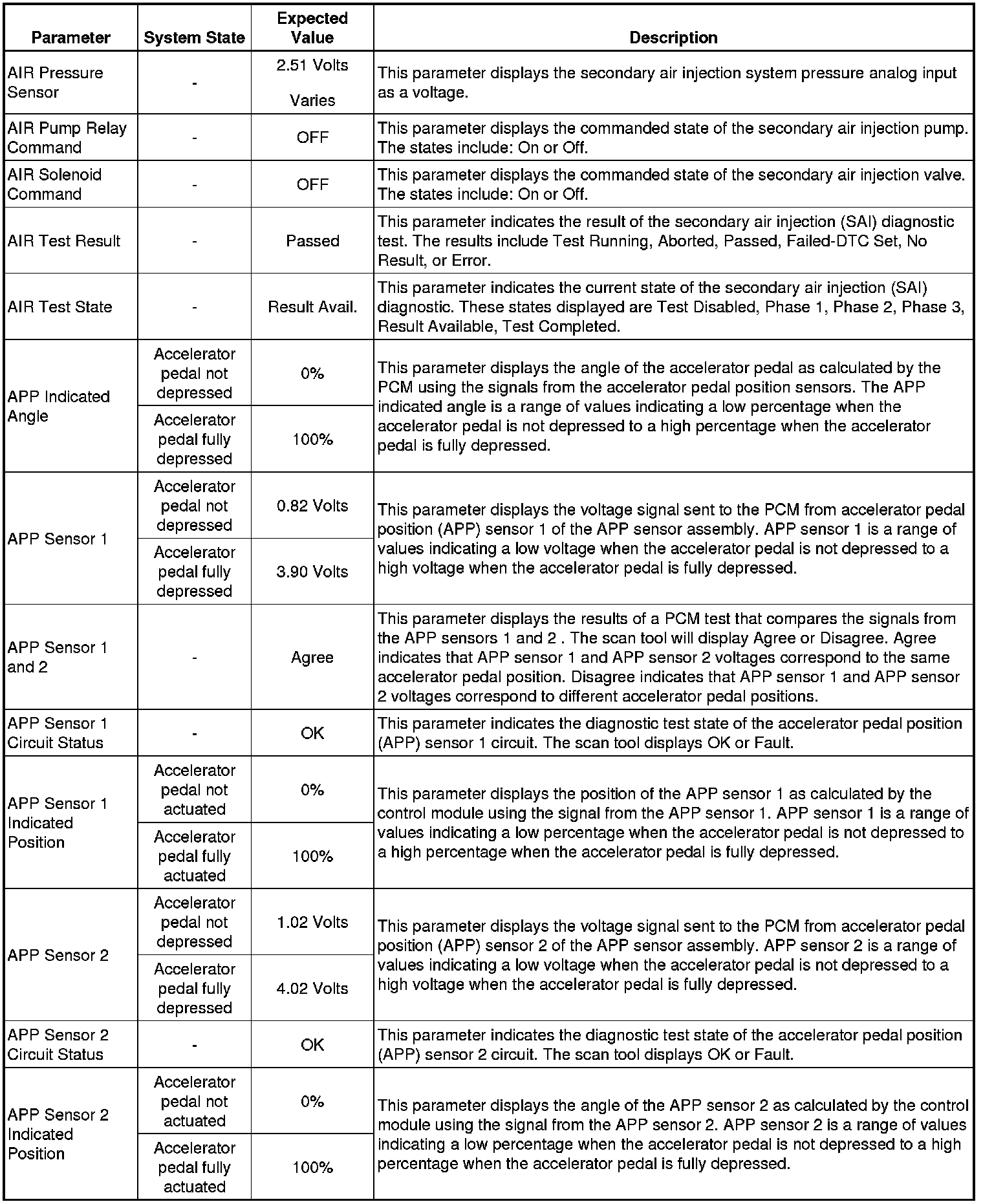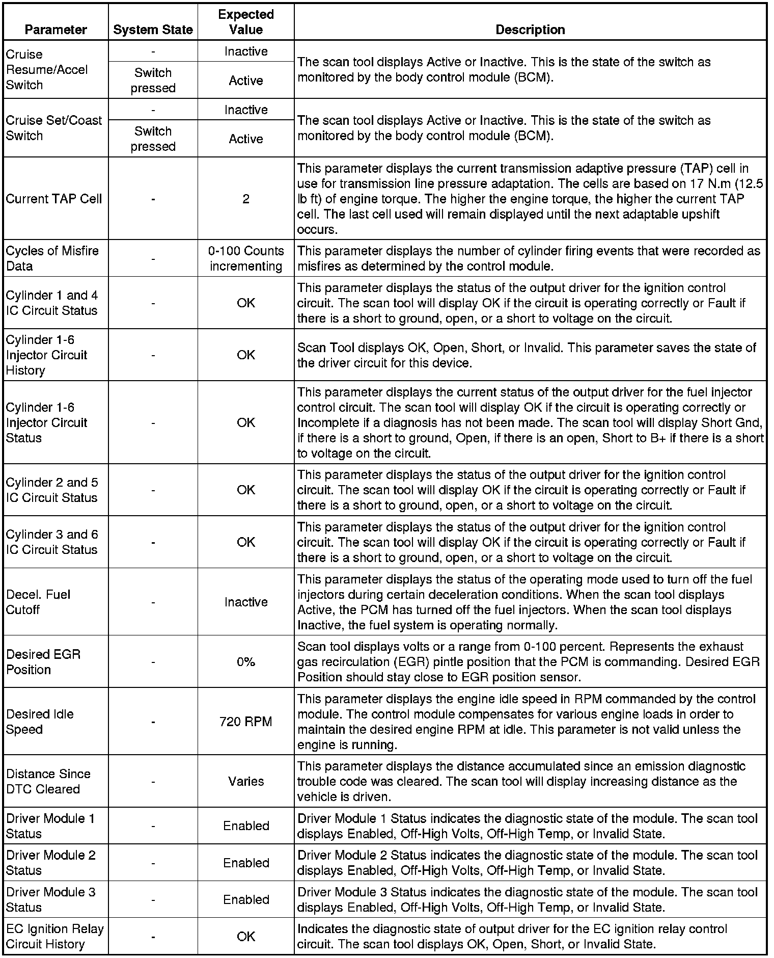 The Engine Control Module Scan Tool Data List contains all engine-related parameters that are available on the scan tool. The list is arranged in alphabetical order. A given parameter may appear in any one of the data lists, and in some cases may appear more than once, or in more than one data list in order to group certain related parameters together.
