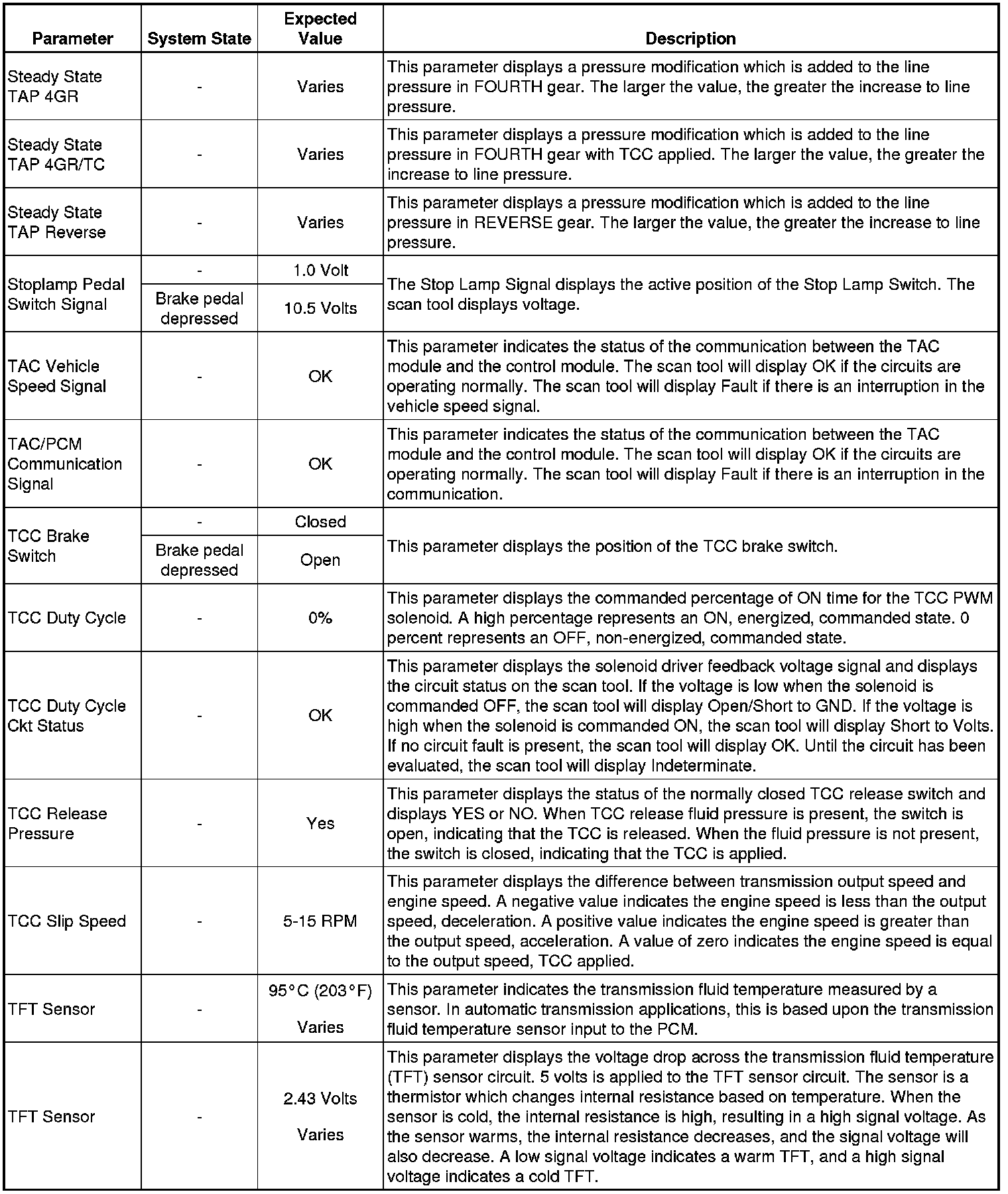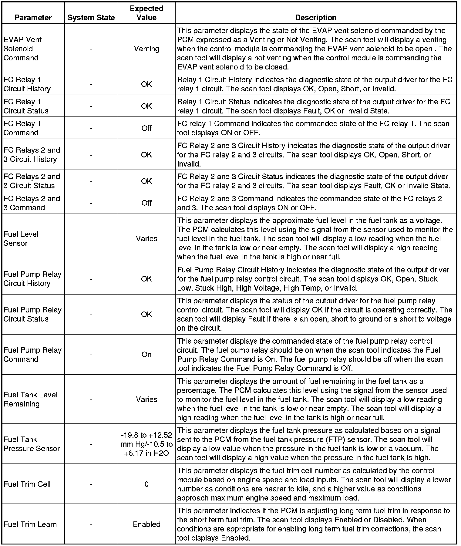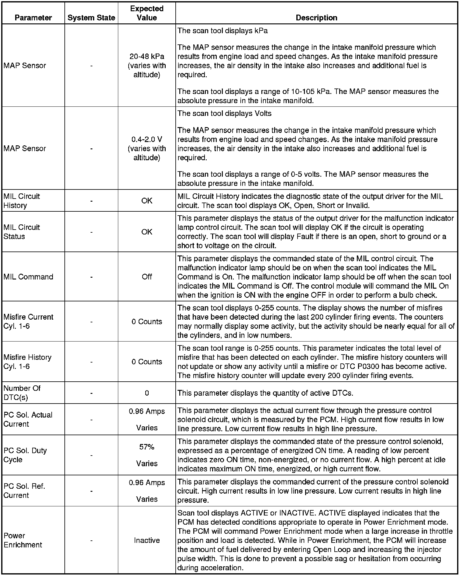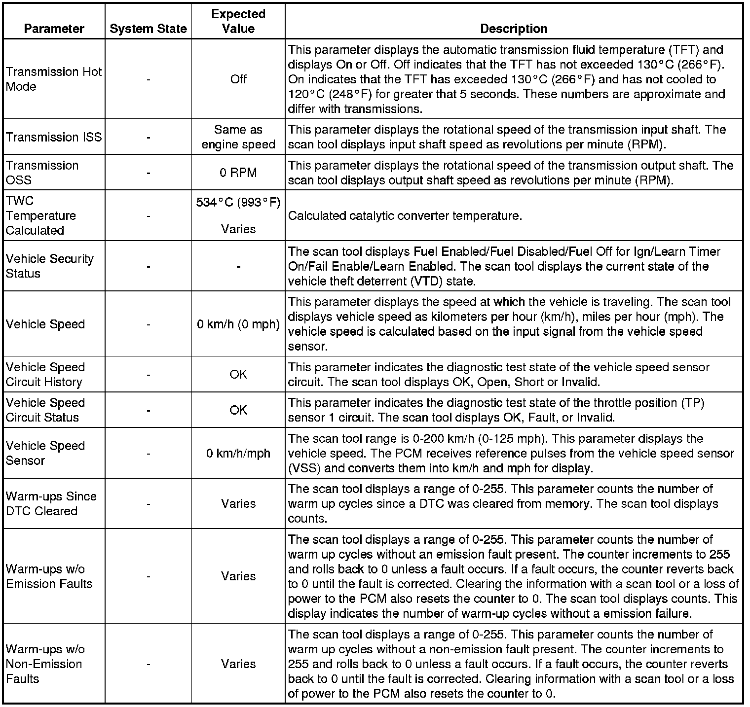 Only the parameters listed below are referenced in this service manual for use in diagnosis. If all values are within the typical range described below, Refer to for diagnosis.