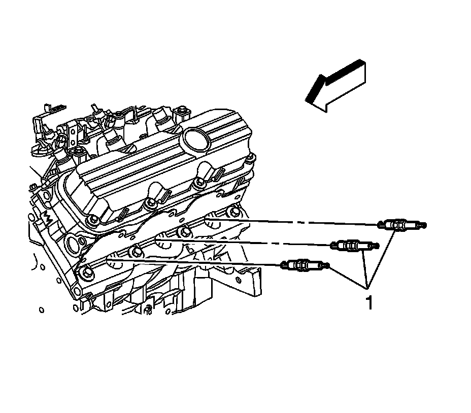 5. Remove the spark plugs (1) from the engine. (front plugs shown, rear plugs similar).