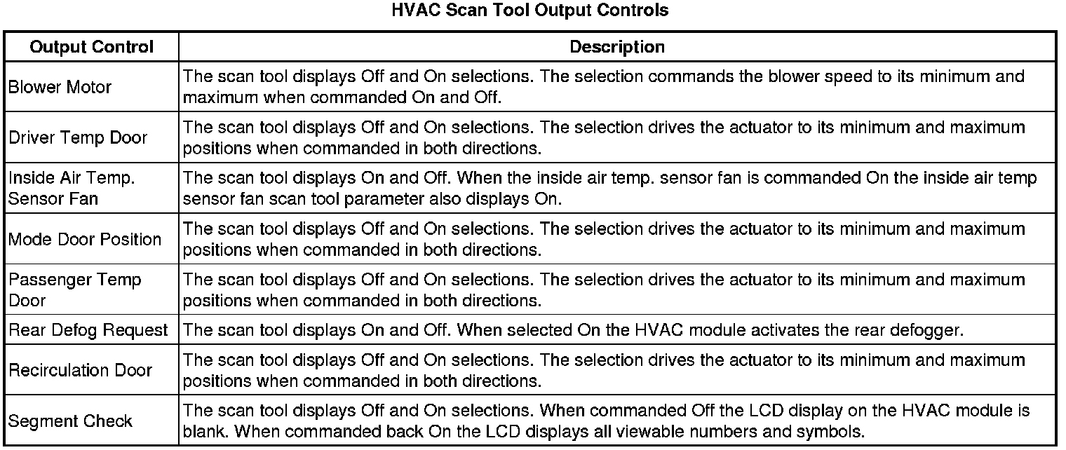 Heating, Ventilation and Air Conditioning Control Module Scan Tool Information