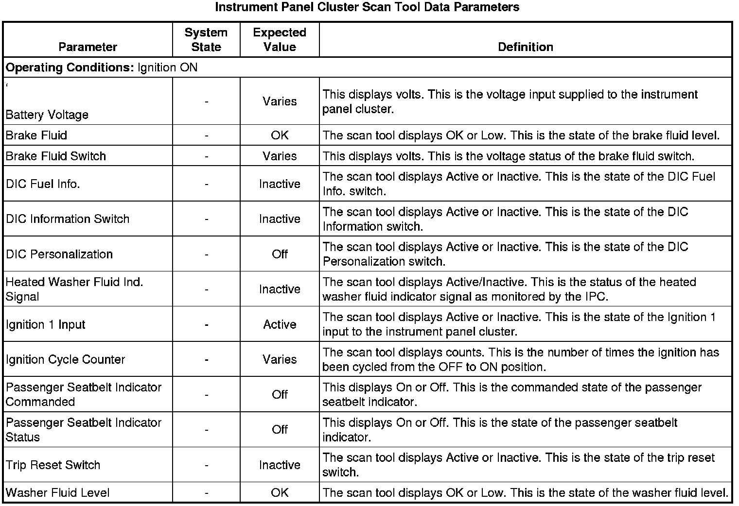 Instrument Cluster Scan Tool Information