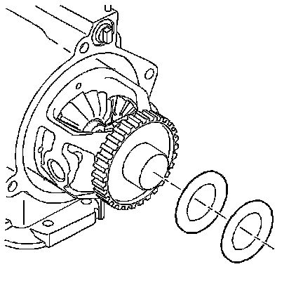 1. Install the washer and the thrust bearing onto the final drive assembly. Use the J 36850 or the equivalent (petroleum jelly), in order to retain the washer and the bearing.