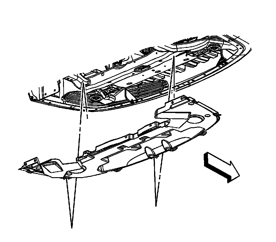 16. Remove the front air deflector. Refer to Front Air Deflector Replacement (Front Air Deflector Replacement).