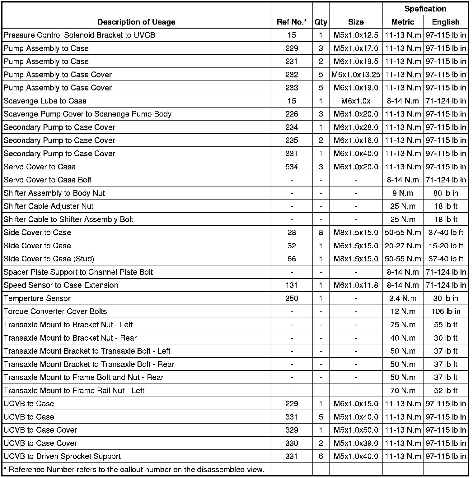 Fastener Tightening Specifications