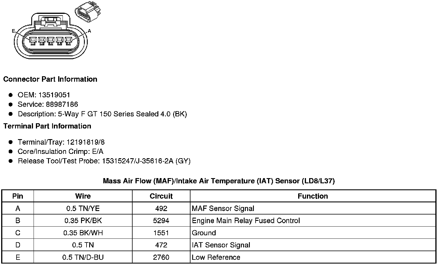 Mass Air Flow (MAF)/Intake Air Temperature (IAT) Sensor (LD8/L37/4.6L/4.6L)