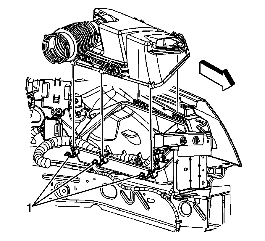 6. Disconnect the secondary air injection (AIR) pump inlet tube quick connect fitting from the air cleaner upper housing. Refer to Plastic Collar Quick Connect Fitting Service (Plastic Collar Quick Connect Fitting Service).