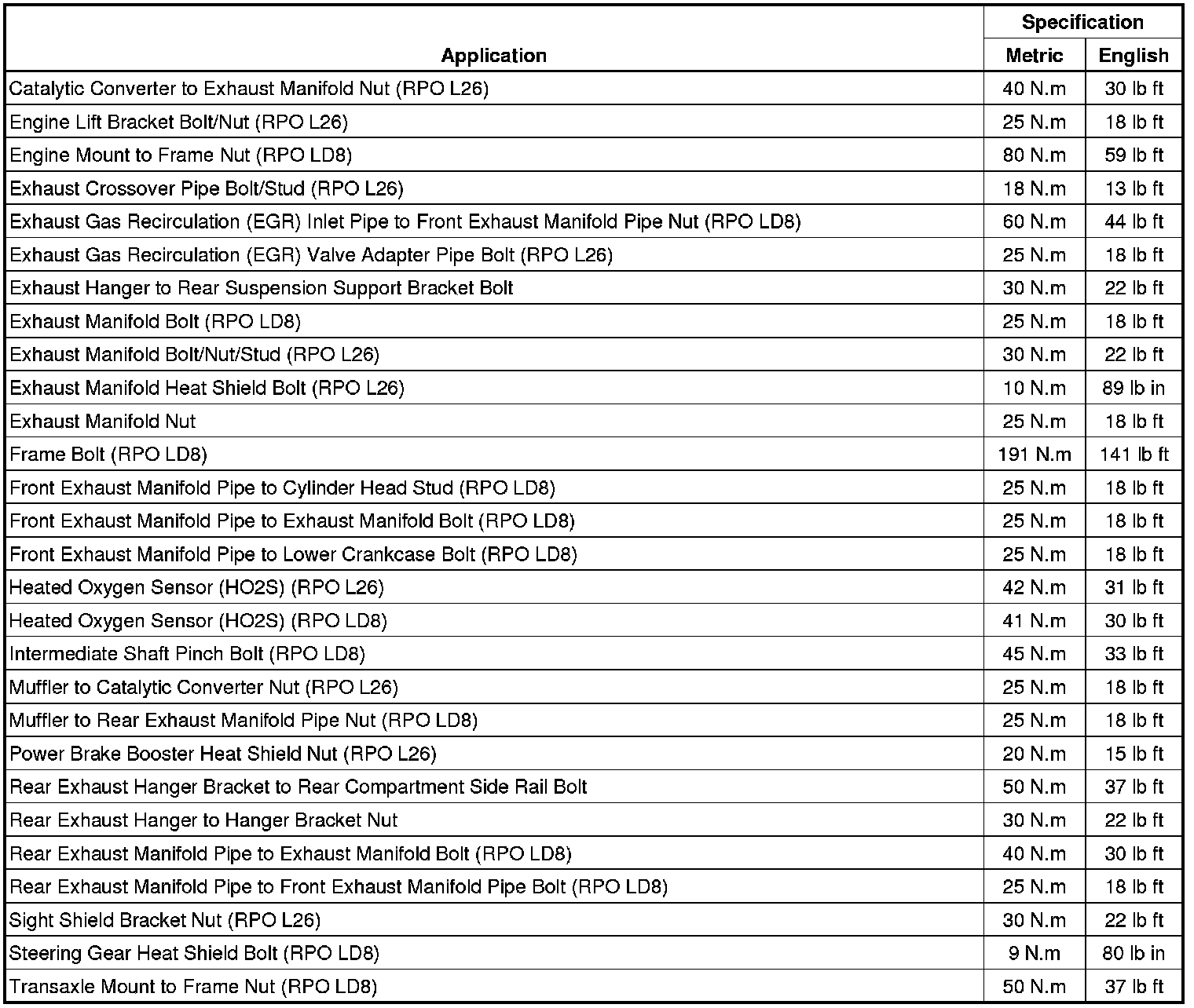 Fastener Tightening Specifications