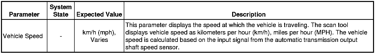 The scan tool values from a properly functioning transmission may be used for comparison with the transmission you are diagnosing. The values below represent a typical display recorded from a properly functioning system.
