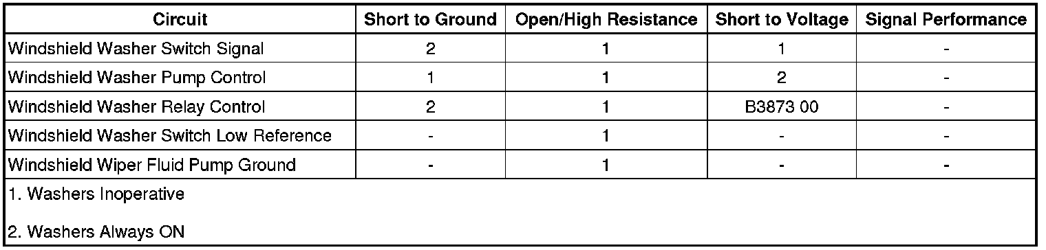 • If the test lamp does not turn ON and OFF while changing between the commanded states, Refer to the Windshield Washer Pump Relay Control Circuit Test.