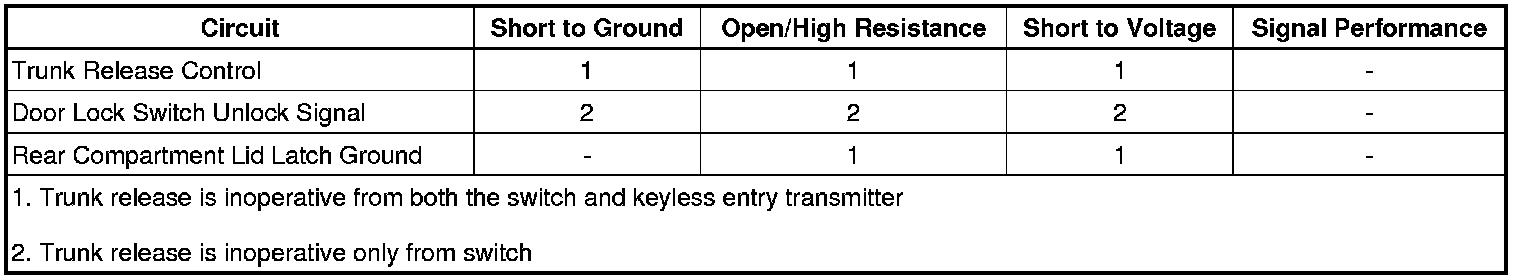 5. If all circuits test normal, test or replace the rear compartment lid latch