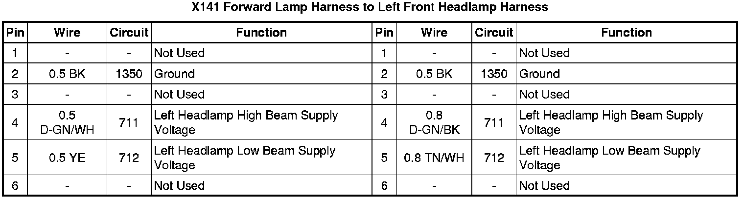 X141 Forward Lamp Harness to Left Front Headlamp Harness