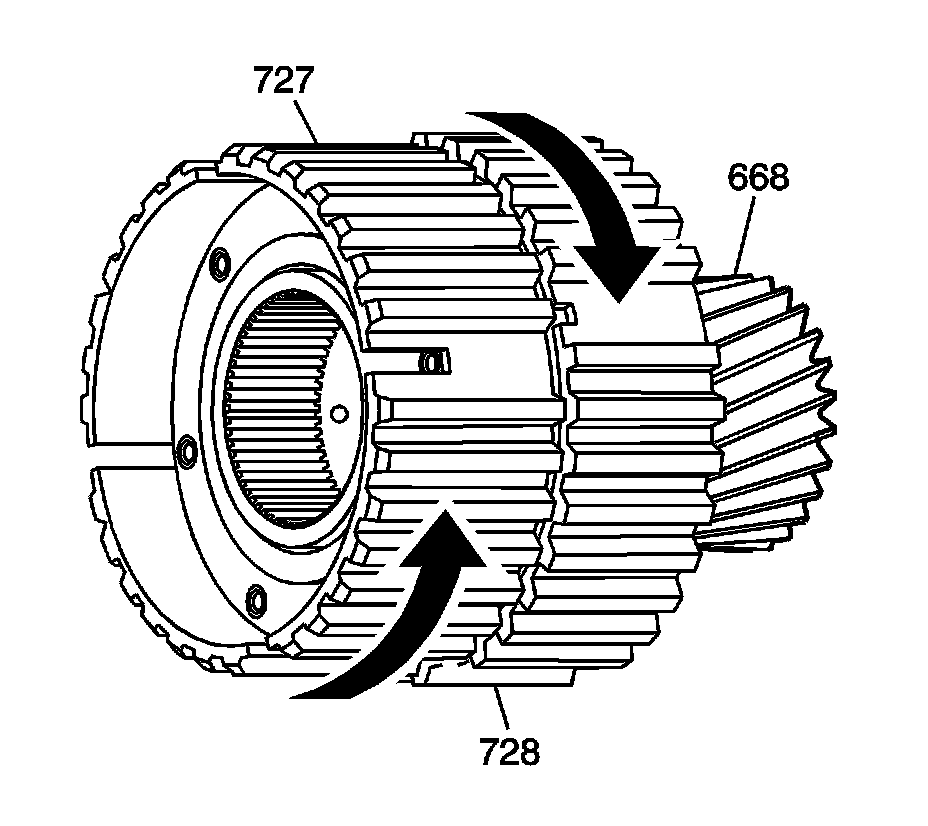 2. The third clutch pawl outer race (727) should rotate only in the direction shown by the arrow and not in the opposite direction.