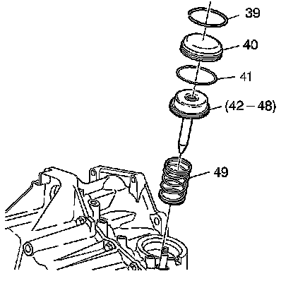 6. Remove the reverse band servo piston spring (49).