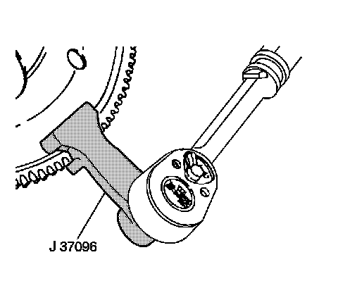 4. Install the J 37096 in order to gain access to the torque converter bolts and to prevent the flywheel from turning.