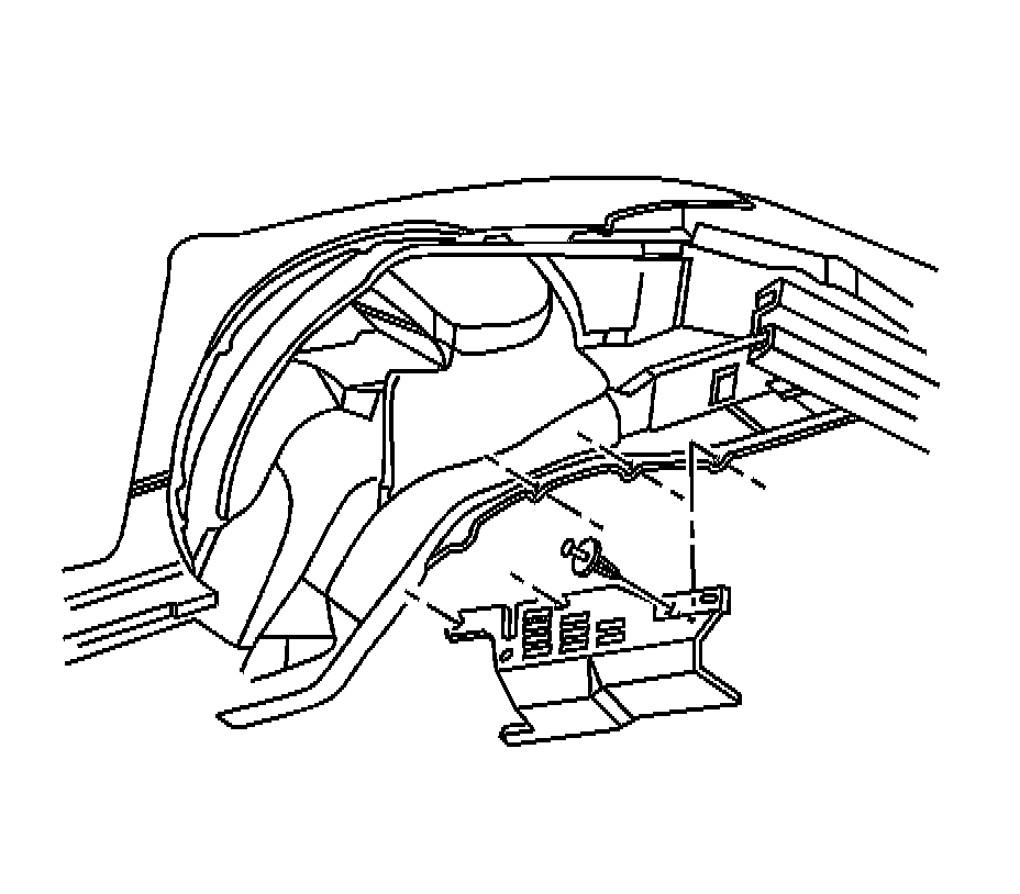 2.Align the holes in the engine splash shield to holes in the outboard side engine compartment side rail.