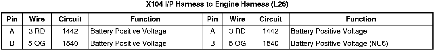 X104 I/P Harness to Engine Harness (L26)