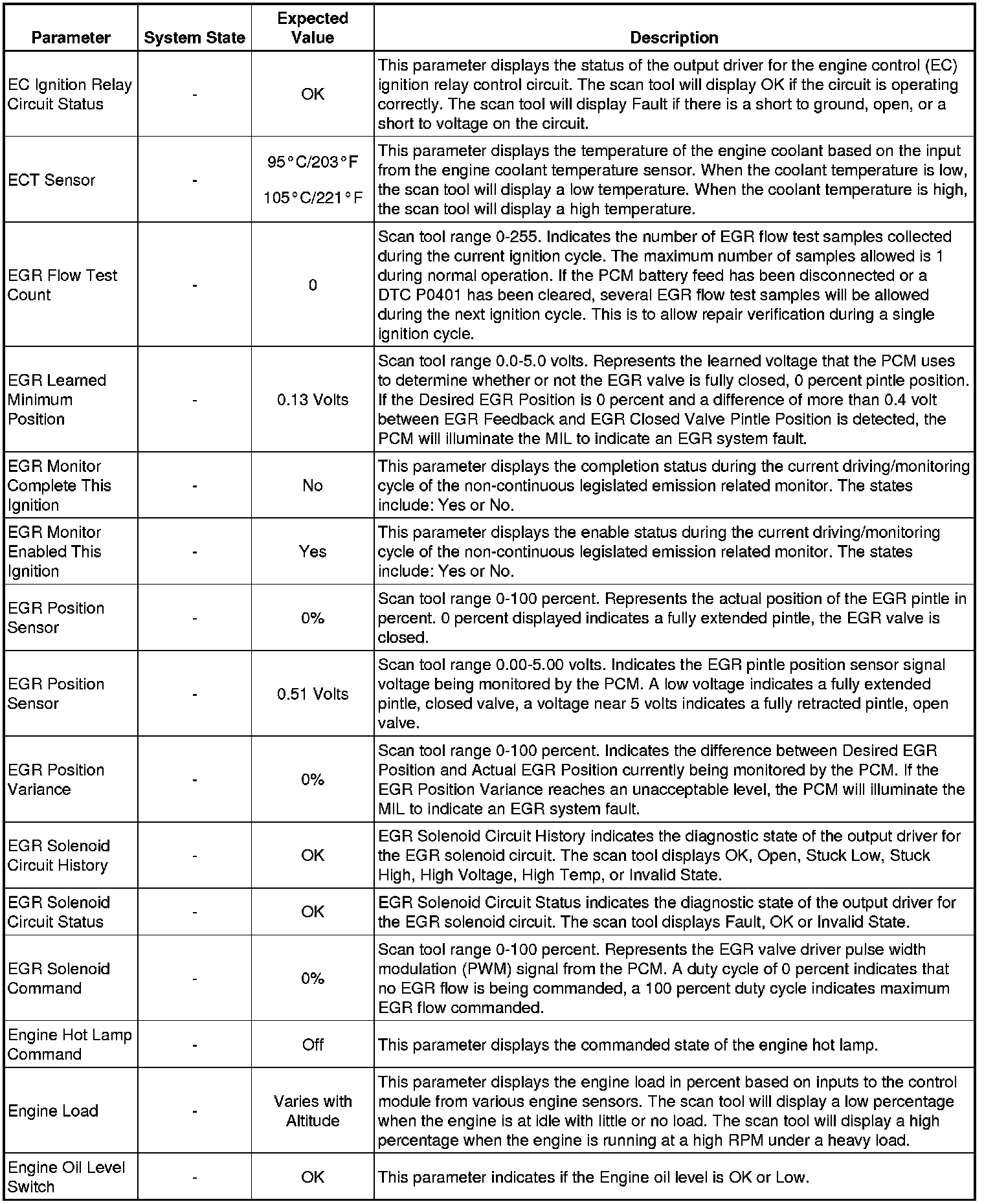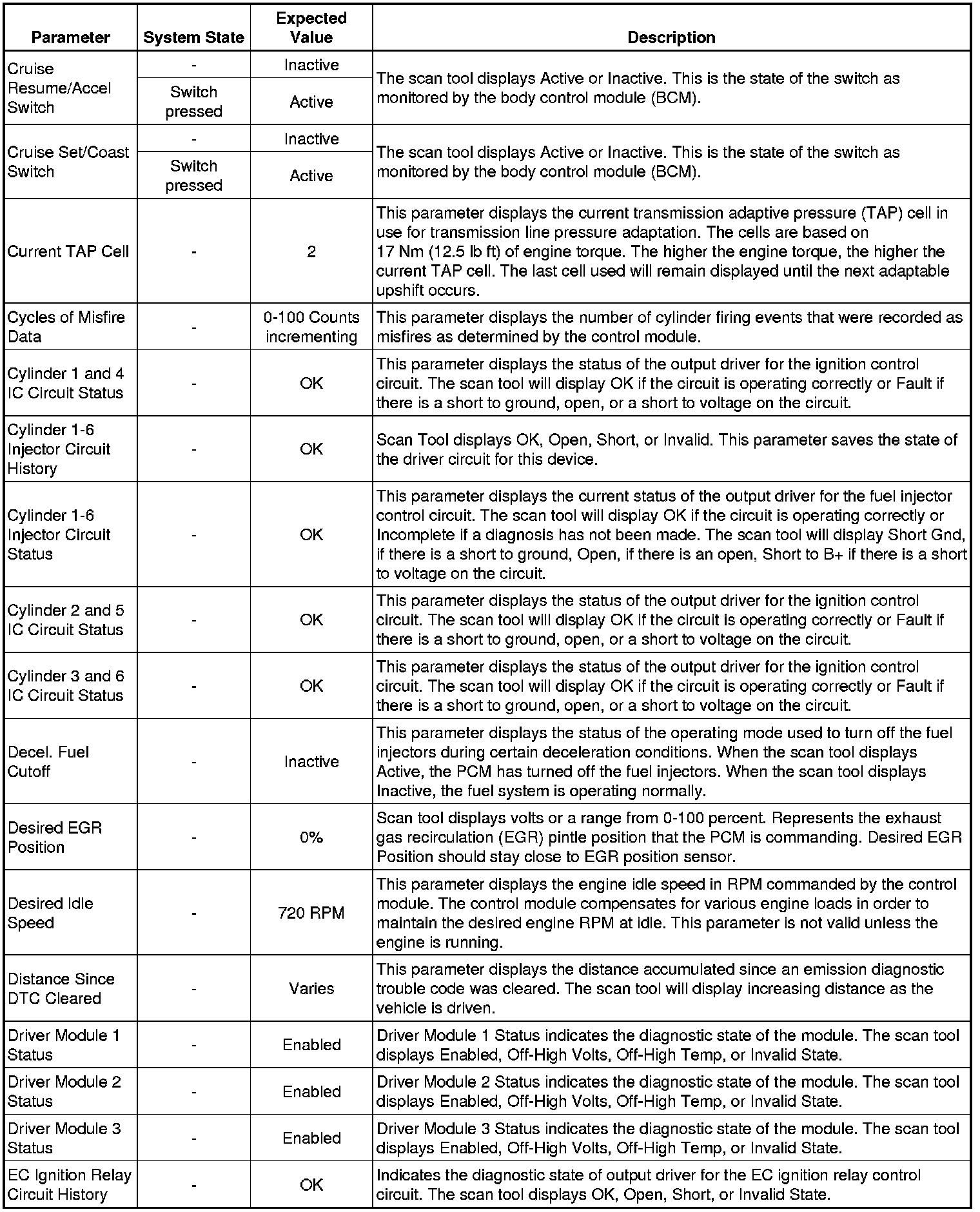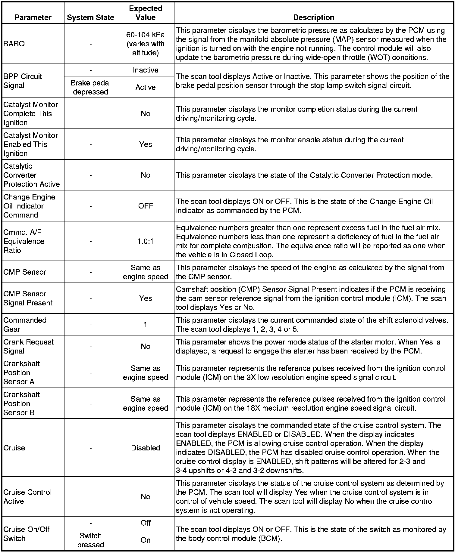 The Engine Control Module Scan Tool Data List contains all engine-related parameters that are available on the scan tool. The list is arranged in alphabetical order. A given parameter may appear in any one of the data lists, and in some cases may appear more than once, or in more than one data list in order to group certain related parameters together.
