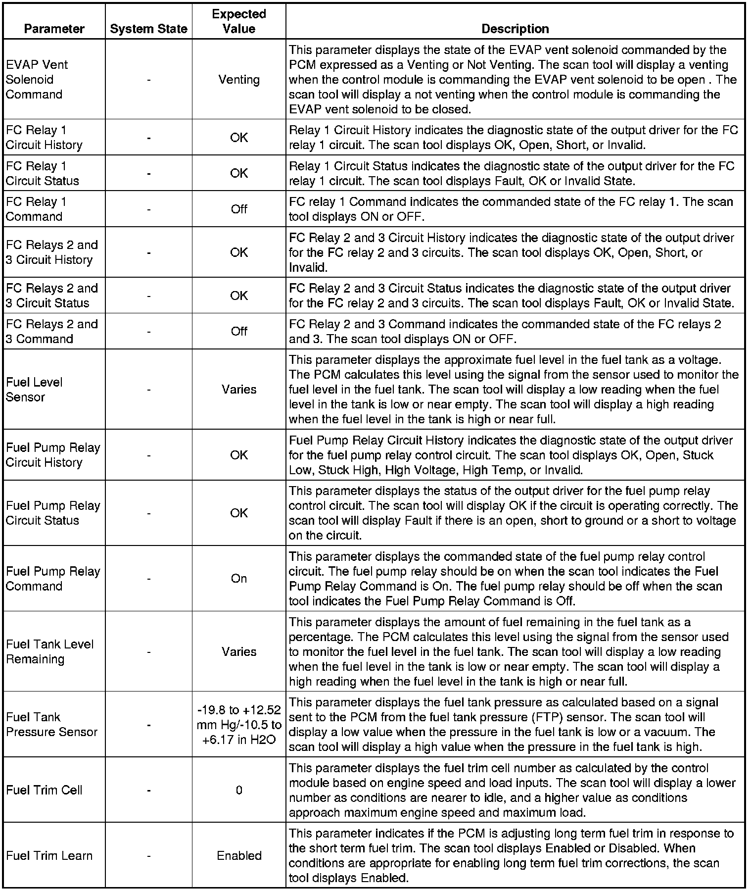 The scan tool values from a properly running engine may be used for comparison with the engine you are diagnosing. The Engine Scan Tool Data List represents values that would be seen on a normally running engine.