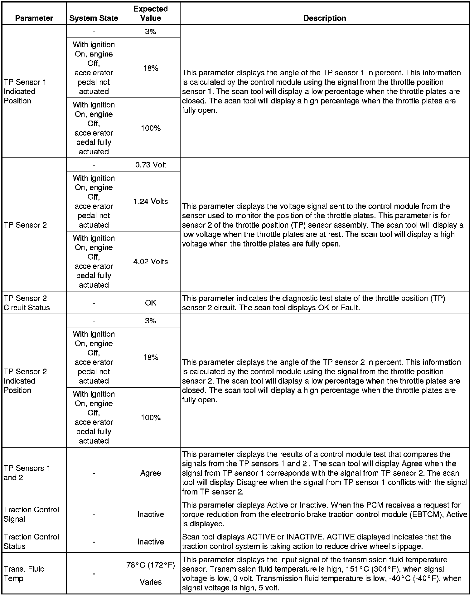 Only the parameters listed below are referenced in this service manual for use in diagnosis. If all values are within the typical range described below, refer to for diagnosis.